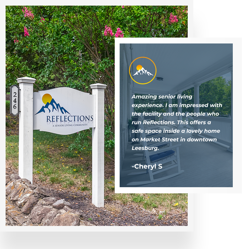 Amazing senior living experience. My mom has been here for two months, I am impressed with the facility and the people who run Reflections. This offers a safe space inside a lovely home on Market Street in downtown Leesburg. If you are looking for a facility to take care of your aging parent because they can no longer live with you or on their own this is the place!